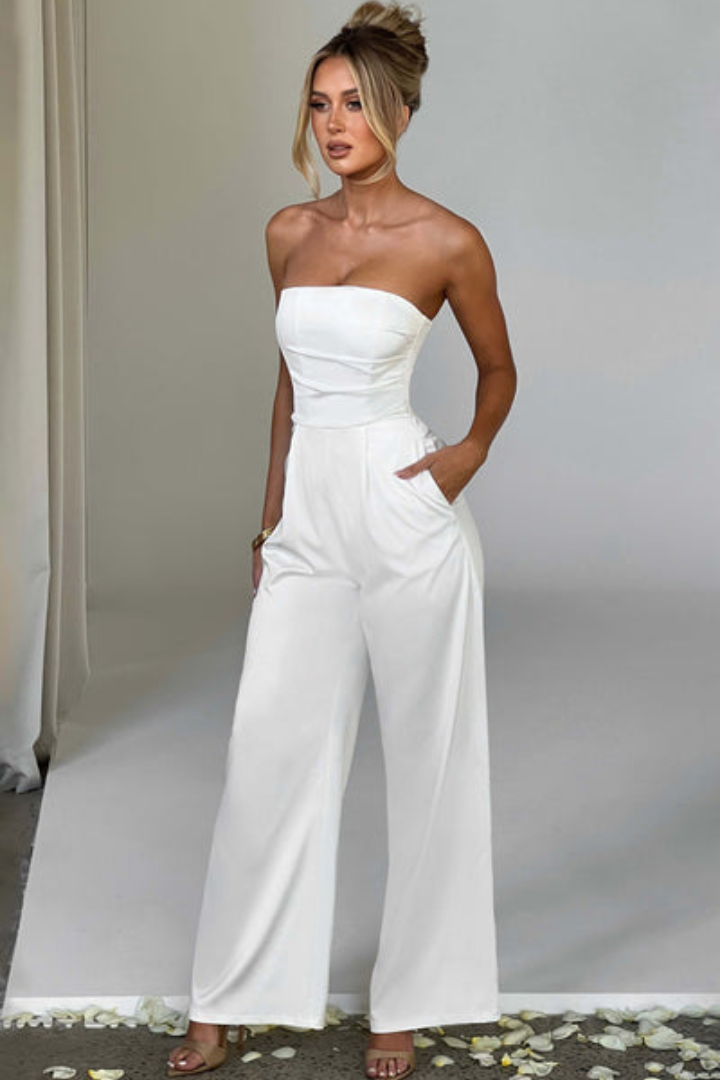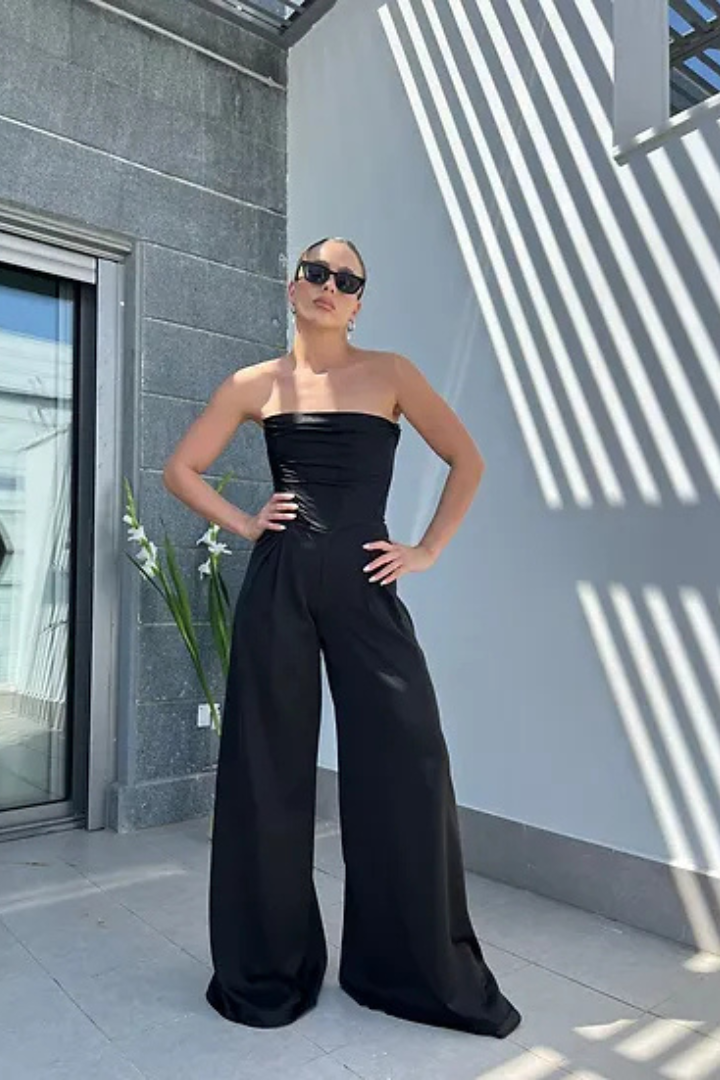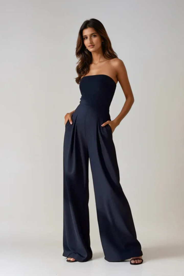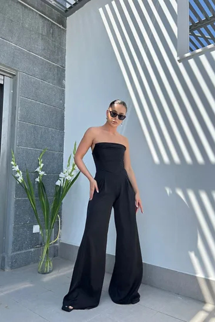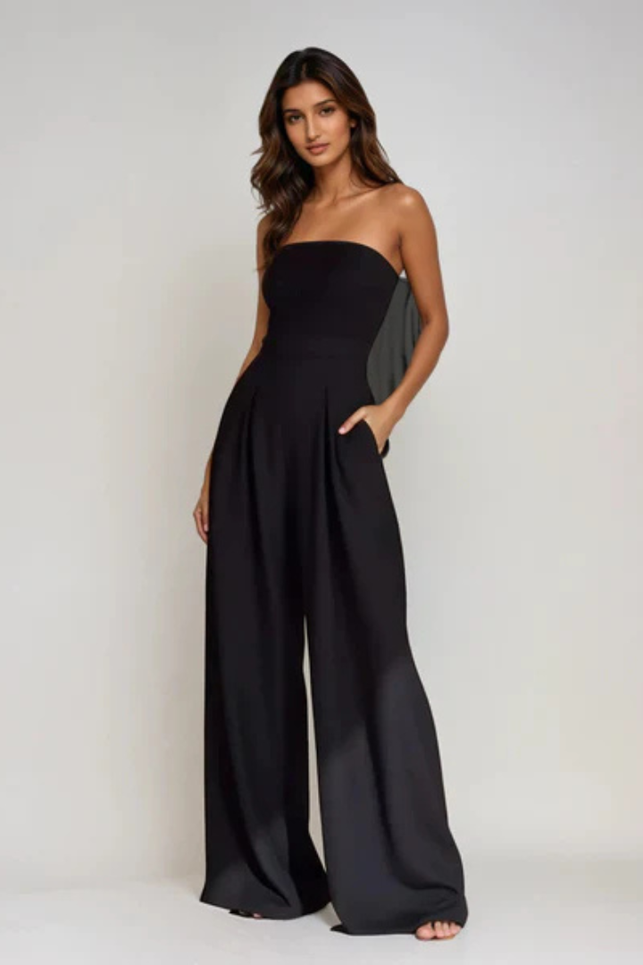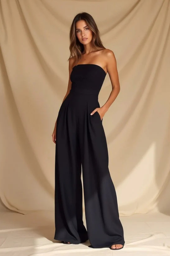 The NoirForm™ isn’t just another jumpsuit — it’s engineered for real bodies. Its stretchy, contour-hugging fabric smooths without squeezing, giving a naturally flattering silhouette. The strapless neckline stays in place without constant adjustment, while the wide-leg drape elongates your frame for an elegant, statuesque look. Every detail is crafted to make you feel effortless, not restricted.